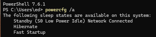 Here’s the skinny: by default, my ThinkPad P16 Mobile Workstations go into S0 sleep but maintain network connection. Here’s how the powercfg /a command reports that state: