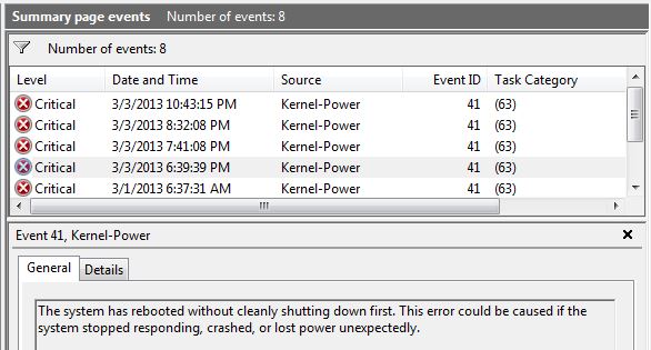 Drat! My production machine has started to act up lately. Yesterday was a pretty extreme example, as this trace from Event Viewer will show: